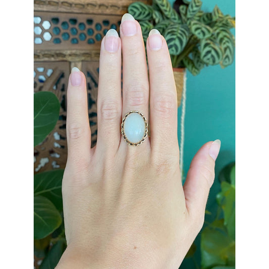 Vintage Solid 14k Yellow Gold White Jade Cabochon Ring - Size 5.75
