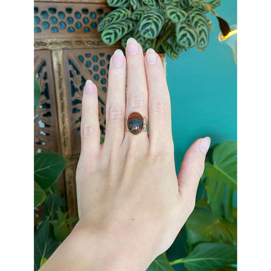 Vintage Solid 14k Yellow Gold Agate Ring - Size 4.25