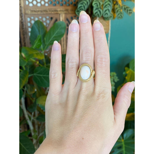 Vintage Solid 18k Yellow Gold Coral Ring - Size 6