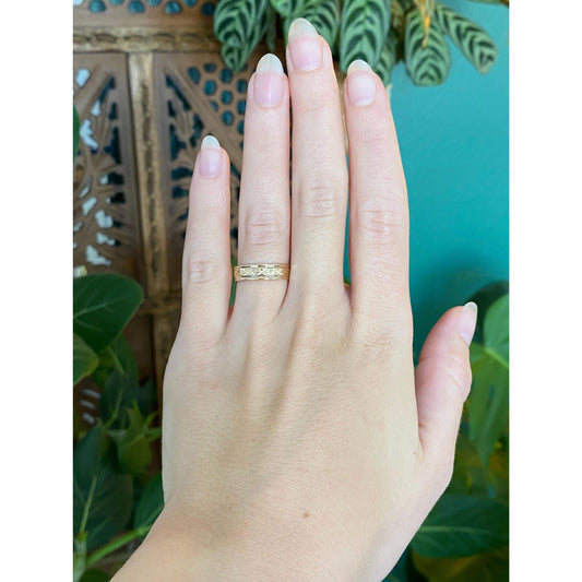 Vintage Solid 14k Yellow Gold Diamond Cut X Pattern Ring Band - Size 6.25