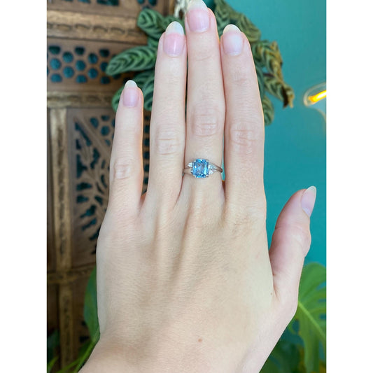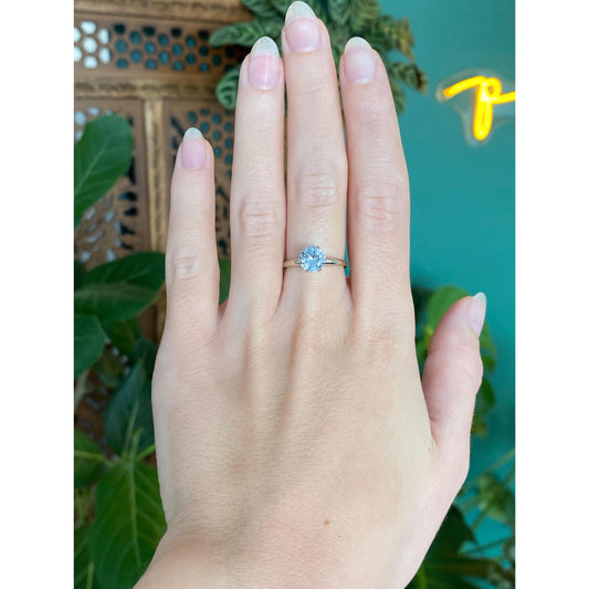 Vintage Solid 10k White Gold Aquamarine Ring - Size 6.75