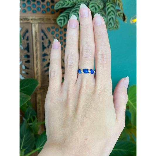 Vintage Solid 14k Yellow Gold Blue Enamel Ring Band - Size 7.25