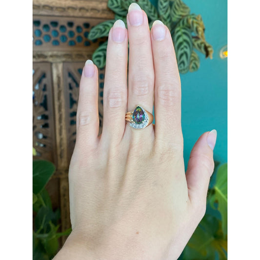Solid 10k Yellow Gold Diamond Mystic Topaz Ring - Size 5.75