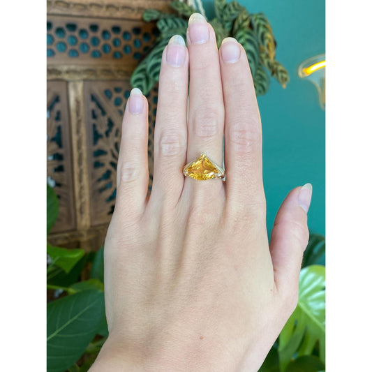 Vintage Solid 14k Yellow Gold Citrine Ring - Size 6.75