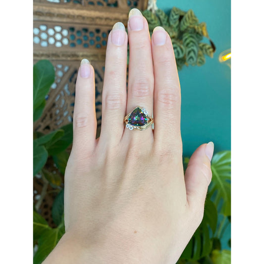 Solid 10k Yellow Gold Mystic Topaz Clear Spinel Ring - Size 6