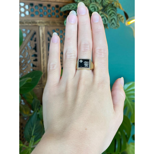 Vintage Solid 14k Yellow Gold Monogram Signet Ring - Size 8