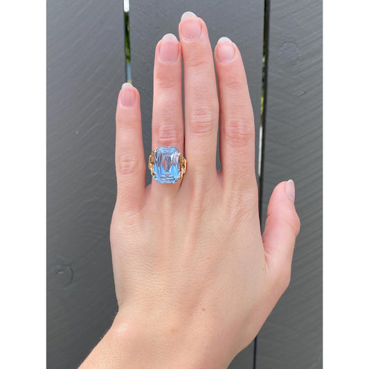 Vintage Solid 14k Yellow Gold Topaz Wire Wrapped Ring - Size 5
