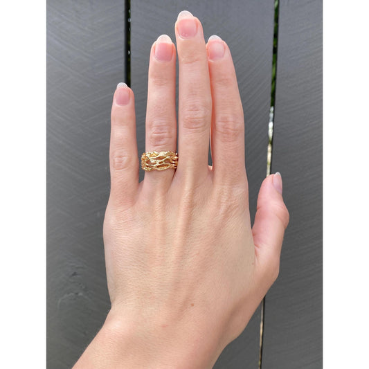 Vintage Solid 14k Yellow Gold Organic Branches Ring Band - Size 5.75