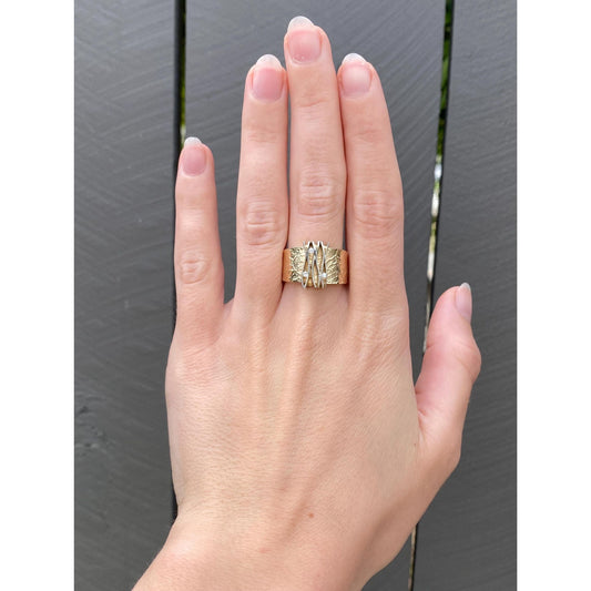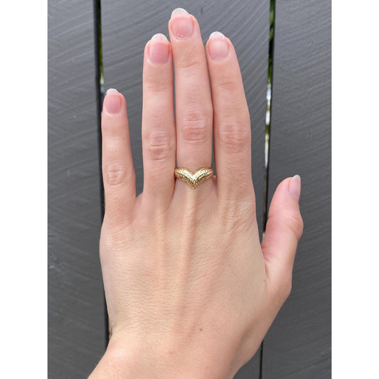 Vintage Solid 14k Yellow Gold Diamond Cut Chevron Ring - Size 5.75