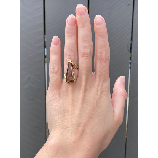 Vintage Solid 14k Yellow Gold Smokey Quartz Triangle Ring - Size 4.5