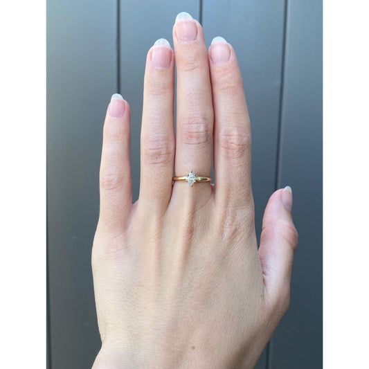 Vintage Solid 14k Yellow Gold Diamond Marquis Engagement Ring - Size 6