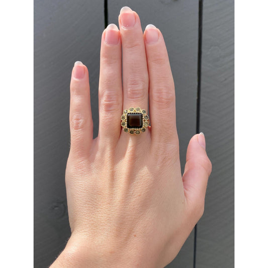 Vintage Solid 14k Yellow Gold Hematite Ring - Size 9.25