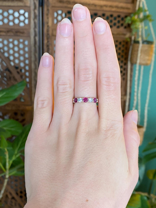 Vintage Solid 14k White Gold Diamond Ruby Band Ring - Size 6.75