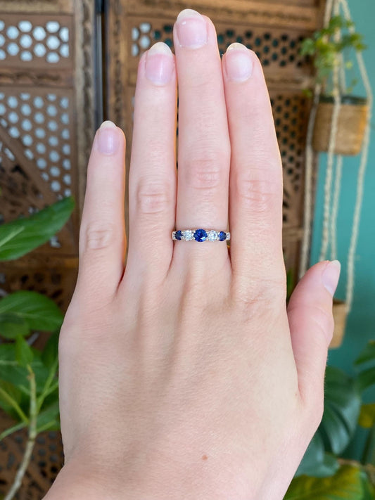 Vintage Solid 14k White Gold Diamond Blue Sapphire Ring Band - Size 6.5