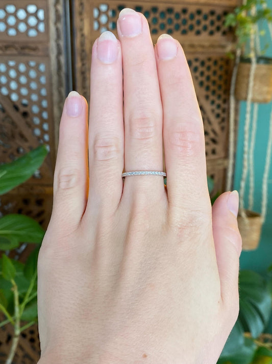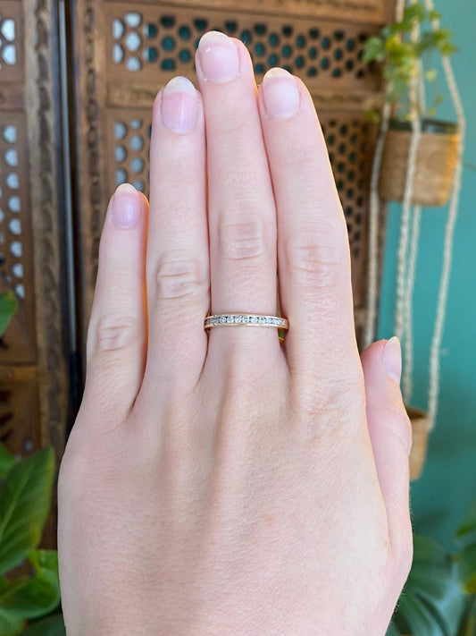 Vintage Solid 14k White Gold Diamond Slim Ring Band - Size 7