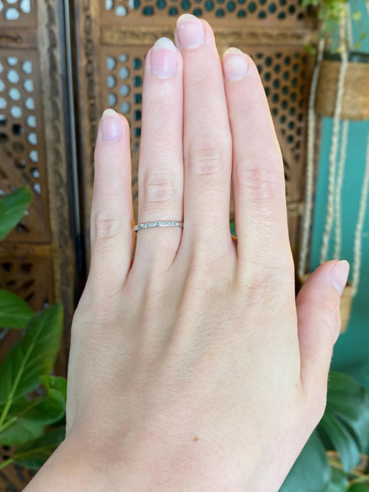 Vintage Solid Platinum Diamond Slim Ring Band - Size 5.5