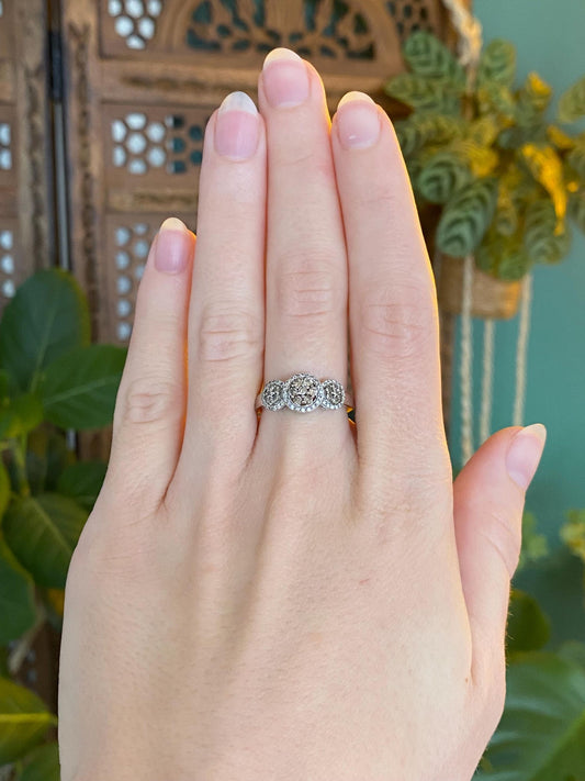 Vintage Solid 10k Yellow Gold Diamond Cluster Ring - Size 6.75