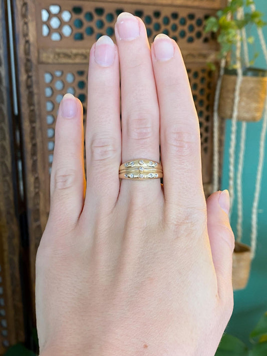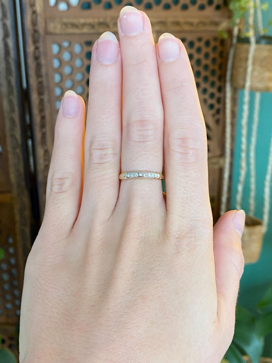 Vintage Solid 14k White & Yellow Gold Diamond Ring Band - Size 6.25