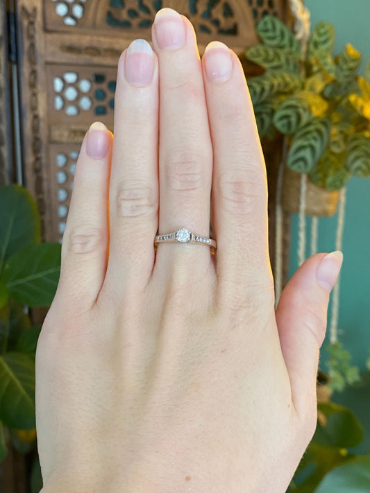 Vintage Solid 10k White Gold Diamond Heart Ring - Size 7.25