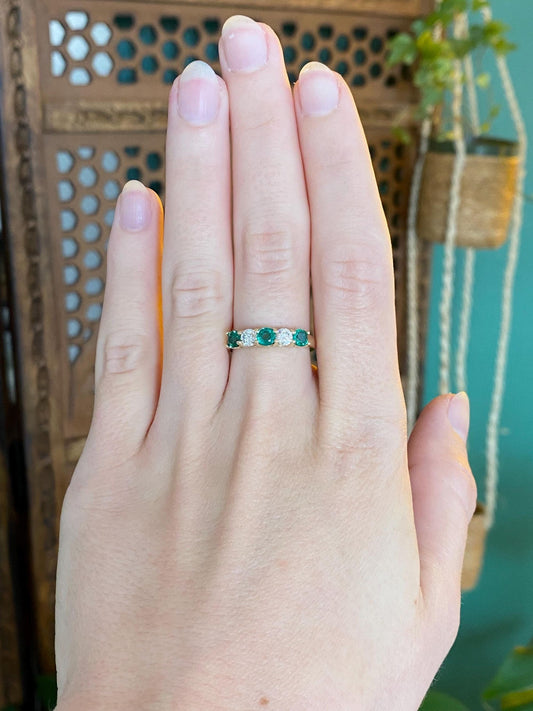 Vintage Solid 14k Yellow Gold Diamond Emerald Ring Band - Size 6.75