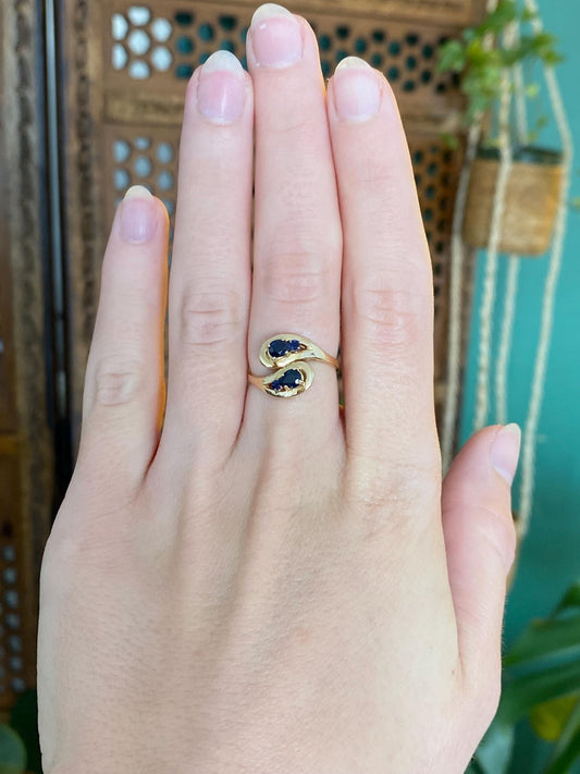 Vintage Solid 18k Yellow Gold Blue Sapphire Twist Ring - Size 5.5