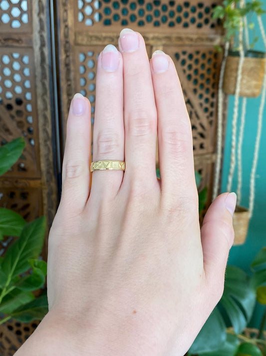 Vintage Solid 18k Yellow Gold Roman Numeral Ring Band - Size 5.25
