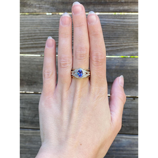 Solid 14k Yellow Gold Diamond Tanzanite Ring - Size 6.75