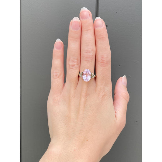 Vintage Solid 10k Yellow Gold Diamond Light Purple Pink Cubic Zirconia Ring - Size 8.75