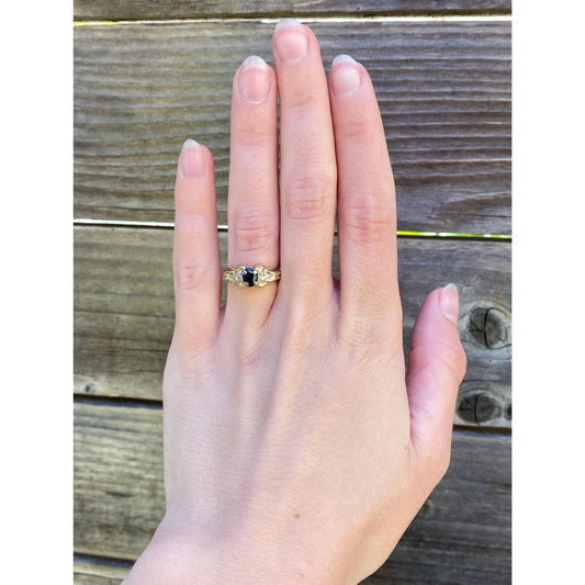 Solid 14k Yellow Gold Diamond Blue Sapphire Ring - Size 5.5