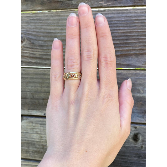 Vintage Solid 14k Rose & Yellow Gold Floral Roses Ring Band - Size 5.5
