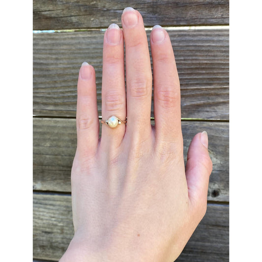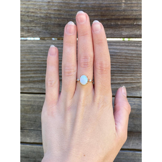 Vintage Solid 14k Yellow Gold Diamond Opal Ring - Size 5.75