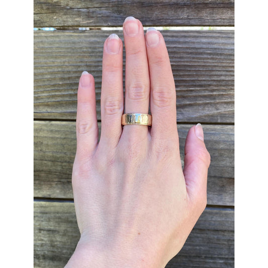 Vintage Solid 14k Yellow Gold Worn Pattern Lined Ring Band - Size 11.25