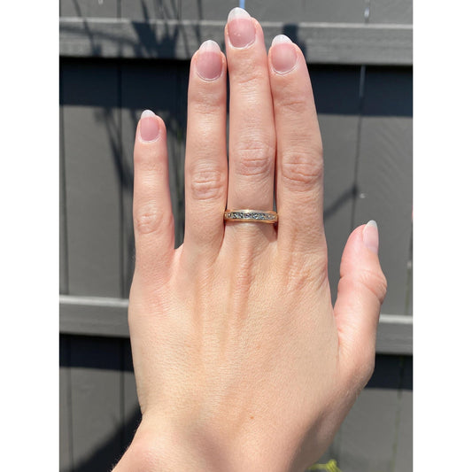 Vintage Solid 14k White & Yellow Gold Diamond Ring Band - Size 6.25