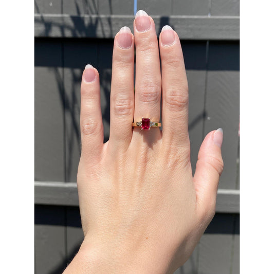 Vintage Solid 14k Yellow Gold Diamond Pink Spinel Ring - Size 6.25