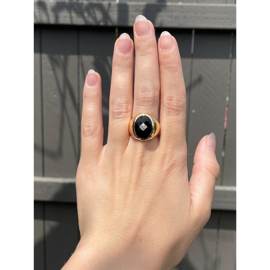 Vintage Solid 14k Yellow Gold Diamond Onyx Signet Ring - Size 7.75