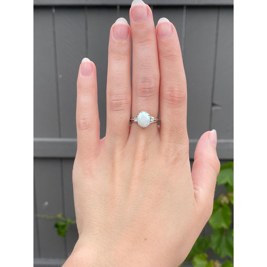 Vintage Solid 14k White Gold Diamond Opal Ring - Size 6.5