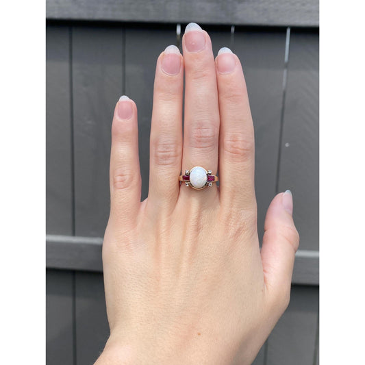 Vintage Solid 10k Yellow Gold Clear Quartz Pink Sapphire Opal Ring - Size 6