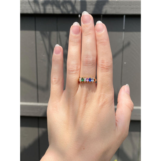 Vintage Solid 14k Yellow Gold Colored Spinel & Cubic Zirconia Row Ring - Size 6.75
