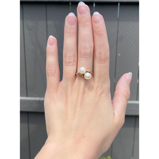Vintage Solid 10k Yellow Gold Double Pearl Ring - Size 8.75