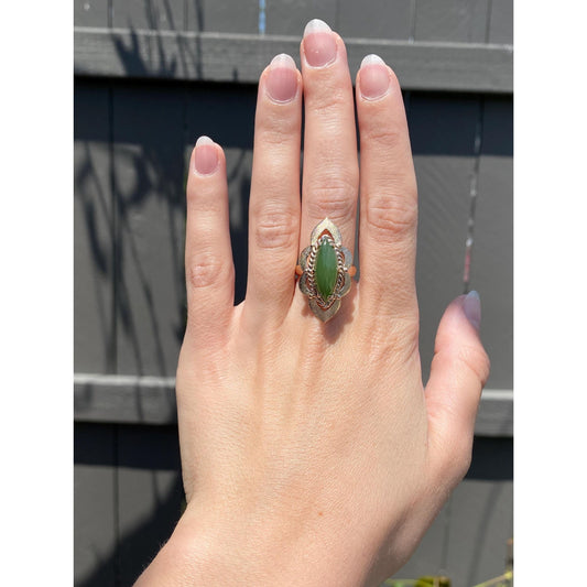 Solid 10k Yellow Gold Nephrite Ring - Size 6.5
