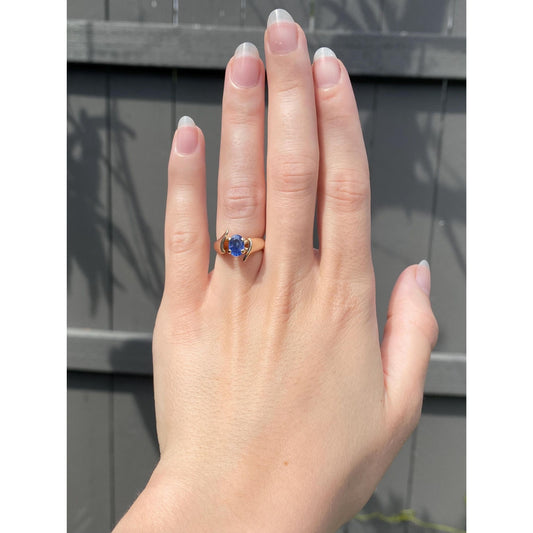 Vintage Solid 14k Rose Gold Diamond Glass Stone Ring - Size 7