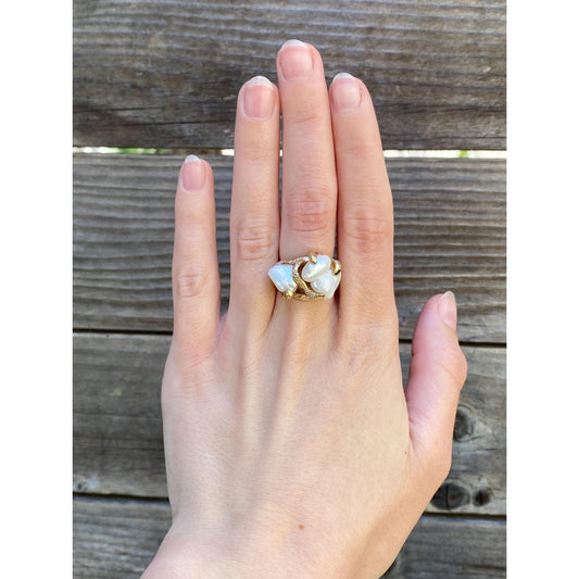 Vintage Solid 14k Yellow Gold Freeform Pearl Branch Ring - Size 5.5