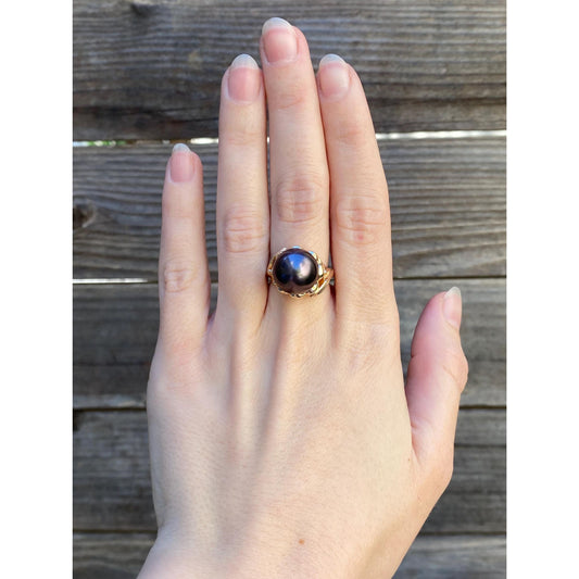 Vintage Solid 14k Yellow Gold Mabe Pearl Ring - Size 6