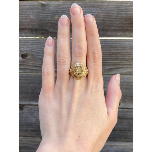 Vintage Solid 10k Yellow Gold Freemason Ring - Size 4.75