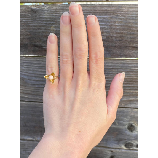 Vintage Solid 14k Yellow Gold Opal Flower Ring - Size 5.75