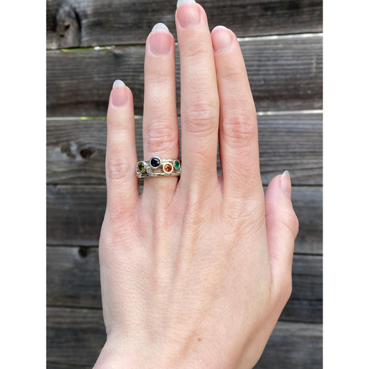 Solid 14k White Gold Diamond Peridot Sapphire Emerald Tanzanite Spinel Ring Band - Size 5.75