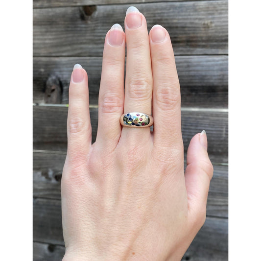 Vintage Solid 10k White Gold Diamond Ruby Sapphire Dotted Ring Band - Size 5.75-6