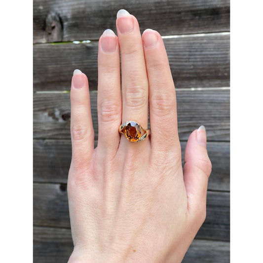 Vintage Solid 14k Yellow Gold Clear Spinel Brown Orange Topaz Ring - Size 6.75