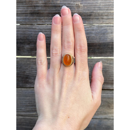 Vintage Solid 14k Yellow Gold Carnelian Ring - Size 5