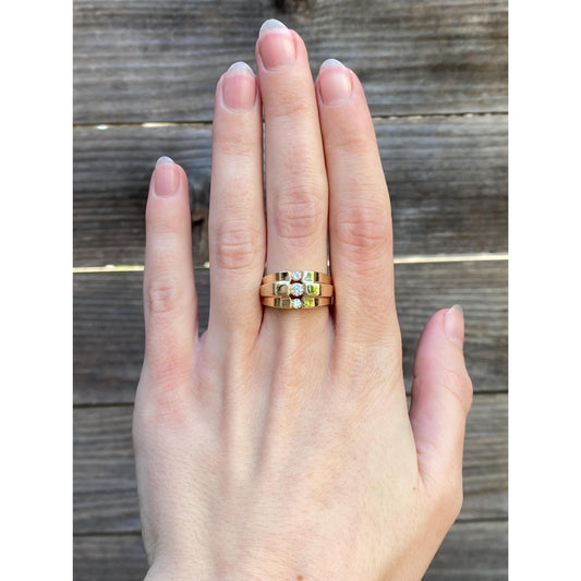Vintage Solid 14k Yellow Gold Diamond Stepped Ring - Size 7.25